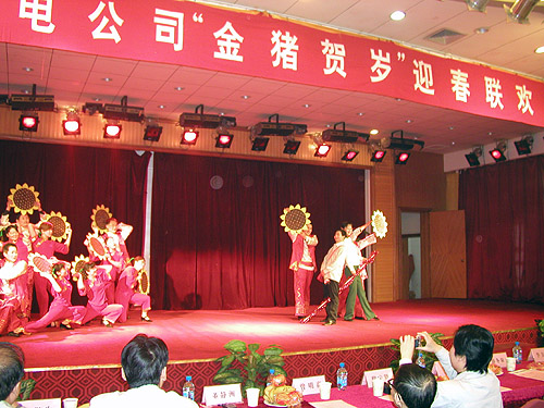 激情豪邁詠舊歲,輕歌曼舞迎新年。2007年2月13日,公司在寶雞萬利大酒店舉行了長嶺紡電“金豬賀歲”迎春聯歡會。公司董事長李強、總經理薛冬泉、公司領導班子以及老領導李友仁、老專家曾明高與公司500多名員工齊聚聯歡會。聯歡會現場張燈結彩,喜氣洋洋,空氣中滿溢著濃濃的節(jié)日氣氛。