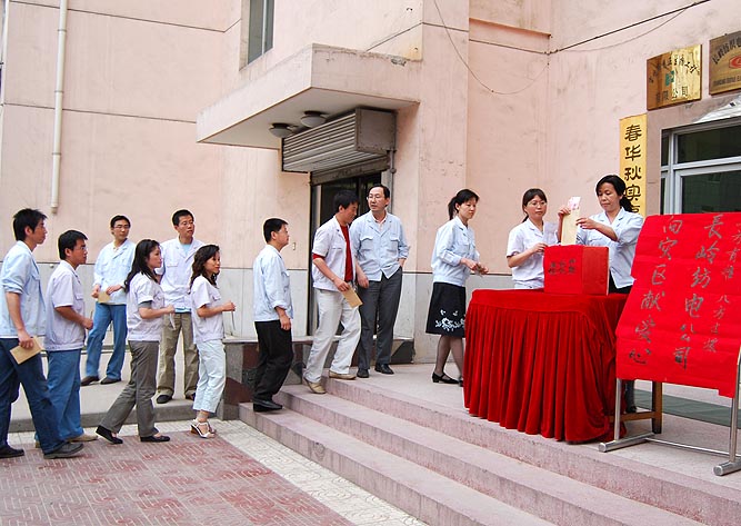 為了給予災(zāi)區(qū)人民及時(shí)救助,公司工會(huì)向全體員工發(fā)起抗震救災(zāi)捐款倡議,號(hào)召大家為災(zāi)區(qū)人民捐款捐物,用點(diǎn)滴愛(ài)心,匯成無(wú)限的真情,為災(zāi)區(qū)人民貢獻(xiàn)一份力量;用實(shí)際行動(dòng)支援災(zāi)區(qū)人民!并于5月16日下午,舉行了“一方有難 八方支援”為主題的抗震救災(zāi)捐款儀式。在公司總經(jīng)理薛冬泉的帶頭下,紡電公司487位員工紛紛解囊,捐款的隊(duì)伍排成了長(zhǎng)隊(duì),截止到5月19日長(zhǎng)嶺紡電公司職工共捐款39601元。目前此筆捐款已通過(guò)集團(tuán)工會(huì)轉(zhuǎn)交寶雞市救災(zāi)募捐辦公室。