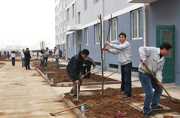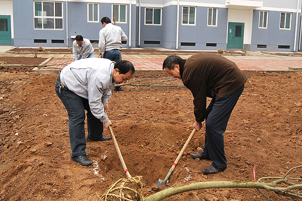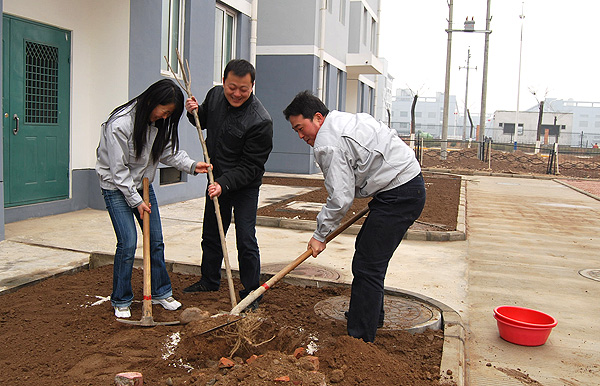 一場(chǎng)春雨剛過(guò),春風(fēng)拂面,乍暖還寒,參加植樹的30多名員工一大早就來(lái)到了新建住宅小區(qū)植樹現(xiàn)場(chǎng),大家拿著鐵锨、鐵鎬等工具,有的忙著舞鎬挖坑,有的施肥撒藥,有的培土澆水,干勁沖天。經(jīng)過(guò)兩個(gè)多小時(shí)的勞動(dòng),大家共種植了玉蘭、女貞、紅葉李、銀杏等樹木二百多棵??粗慌排磐Π蔚男?,每個(gè)員工洋溢著喜悅的笑容,大家感到栽培下去的不僅僅是一顆小樹,更是一份祝愿和希望。一點(diǎn)綠意承載著我們的情感,一棵小樹寄托著大家的希望,愿它快快成長(zhǎng)并和我們一起共同見(jiàn)證長(zhǎng)嶺紡電的發(fā)展壯大。
