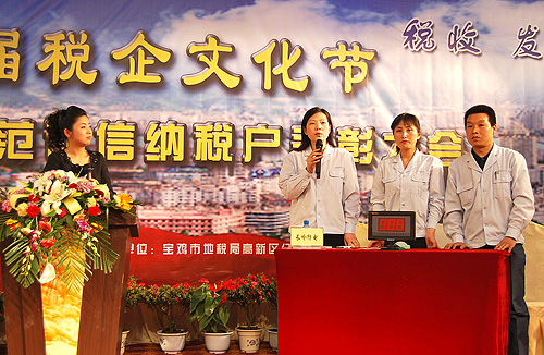 為廣泛深入宣傳普及稅法知識,進一步提高納稅人依法、誠信納稅意識,建立和諧融洽的稅企關(guān)系,寶雞高新區(qū)地稅局舉辦了首屆稅企文化節(jié),開展了豐富多彩的征文、書畫、文藝演出等活動。本次知識競賽共有六支代表隊參賽,競賽分四個環(huán)節(jié),分別是必答題、搶答題、判斷題、風險題。我公司參賽選手經(jīng)過認真仔細的準備,表現(xiàn)突出,對答如流。為給競賽隊加油,展示長嶺紡電公司風采,公司還組織了加油方隊,臺上沉著應(yīng)對,臺下掌聲陣陣,充分展示了長嶺紡電員工豐富的稅法知識、過硬的心理素質(zhì)以及良好的團隊精神。經(jīng)過四個環(huán)節(jié)的緊張競賽,最終紡電公司代表隊獲得一等獎,蒙牛集團、中鐵電氣化獲得二等獎,凌云集團等三家單位獲得三等獎。