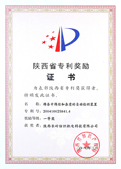 在剛剛結(jié)束的陜西省2010年知識產(chǎn)權(quán)工作會議上,我公司的發(fā)明專利“棉條中棉結(jié)和雜質(zhì)的自動檢測裝置”(專利號ZL200410025841.4)獲得2009年度陜西省專利獎一等獎,副省長朱靜芝為我公司頒發(fā)了獲獎證書。全省共有六項專利技術(shù)獲一等獎。此項榮譽的獲得,是對我公司多年堅持自主創(chuàng)新構(gòu)建企業(yè)核心競爭力的充分肯定,也將極大地推進企業(yè)在促進專利技術(shù)產(chǎn)業(yè)化方面不斷創(chuàng)新。