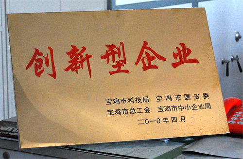 日前,在寶雞市召開的“2010年科技工作暨重大科技項目評審會議”上,我公司等12家企業(yè)被命名為寶雞市創(chuàng)新型企業(yè)稱號,并受到表彰。標志著該公司的創(chuàng)新能力走在全國同行業(yè)前沿,對于進一步增強企業(yè)的創(chuàng)新能力,培育知名品牌,增強企業(yè)的競爭力起到了積極的促進作用。