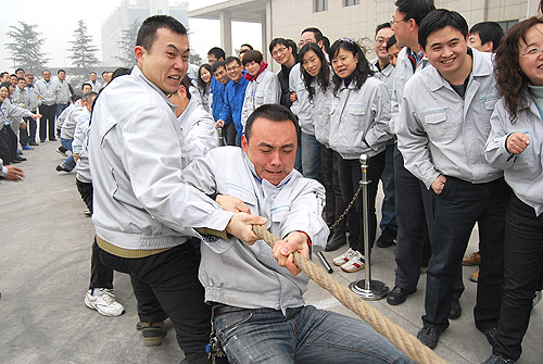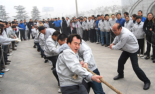 為慶祝農(nóng)歷壬辰年新春佳節(jié)的來(lái)臨,2012年1月18日下午,紡電公司在公司園區(qū)內(nèi)開展了“賀新年迎春運(yùn)動(dòng)會(huì)”。紡電公司9個(gè)分會(huì)、14個(gè)部門的200多名員工參加了運(yùn)動(dòng)會(huì)。此次運(yùn)動(dòng)會(huì)設(shè)置了“拔河、集體木屐、跳繩、頂氣球”四個(gè)項(xiàng)目。各分會(huì)和各參賽單位都認(rèn)真對(duì)待,積極組織訓(xùn)練,各行政單位也給予全力支持。運(yùn)動(dòng)會(huì)本著“友誼第一、比賽第二”的原則,賽場(chǎng)上隊(duì)員全力以赴、斗志昂揚(yáng),比賽緊張激烈、精彩紛呈,展現(xiàn)了紡電員工的活力和激情。經(jīng)過(guò)激烈的角逐,紡研所分會(huì)獲得集體木屐、跳繩、頂氣球三項(xiàng)總分第一;質(zhì)管部分會(huì)和紡電制造部分會(huì)并列第二名。拔河比賽前兩名分別是:紡研所分會(huì)和紡電制造部分會(huì)。通過(guò)比賽,既增強(qiáng)了員工的體質(zhì)、愉悅了身心、鍛煉了意志,也促進(jìn)了員工間的了解與交流,增進(jìn)了友誼,比出了風(fēng)格,賽出了水平。 現(xiàn)場(chǎng)氣氛熱烈,到處充滿了歡聲笑語(yǔ),吸引了200多位員工到場(chǎng)加油、助威。