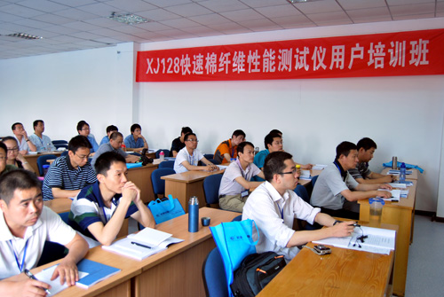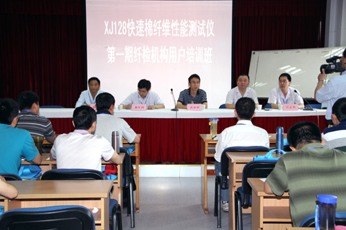 此次培訓(xùn)是長(zhǎng)嶺紡電公司針對(duì)“XJ128快速棉纖維性能測(cè)試儀”產(chǎn)品舉辦的第一期用戶培訓(xùn)班。培訓(xùn)班歷時(shí)7天,辦學(xué)方式采用理論講授和現(xiàn)場(chǎng)教學(xué)相結(jié)合,產(chǎn)品研發(fā)人員與客戶面對(duì)面交流,解疑釋惑。從產(chǎn)品測(cè)量原理、使用方法、日常維護(hù)及故障處理等方面進(jìn)行詳細(xì)的論述。中纖局測(cè)試中心張保國(guó)主任在開班儀式上要求各位學(xué)員通過(guò)這次難得的學(xué)習(xí)機(jī)會(huì),與老師、專家充分交流,虛心請(qǐng)教,真正成為國(guó)產(chǎn)“HVI”應(yīng)用的行家里手。