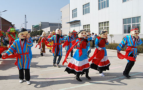 由公司年輕人組成的社火表演隊(duì),精神抖擻,隨著歡快的新年樂(lè)曲,舞動(dòng)著跳躍的舞步,臉上洋溢著對(duì)幸福的憧憬和渴望,濃濃的年味十足。