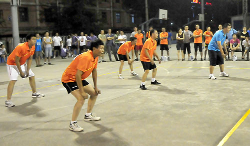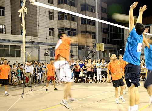 紡電公司男子排球隊由6名老隊員和7名新隊員組成,以老帶新旨在培養(yǎng)、鍛煉隊伍,為今后的比賽打好基礎(chǔ)。訓(xùn)練時,球隊制定了嚴密的訓(xùn)練計劃,教練認真負責(zé),對新隊員從發(fā)球、墊球這些最基本的項目開始訓(xùn)練,老隊員不遺余力言傳身教,大家克服各種困難,頂著烈日積極訓(xùn)練,每場下來各個都是汗流浹背;尤其是保衛(wèi)部的3名年輕隊員,每次上完夜班還沒有回去休息就加入訓(xùn)練當(dāng)中,從沒有拉下一次訓(xùn)練,受到大家的一致贊揚。經(jīng)過一個月的艱苦訓(xùn)練,新隊員們從最初的不會墊球,到最終能夠穩(wěn)健的發(fā)球、接球;隊員們的皮膚也從白皙逐漸變得黝黑,大家都親切地稱他們?yōu)椤袄虾诤托『凇薄1荣悎錾?,他們個個奮勇拼搏,經(jīng)過三輪激烈的廝殺,紡電男子排球隊打出了威風(fēng),打出了氣勢,最終以第三名的好成績?yōu)榻衲甑呐徘虮荣惍嬌狭藞A滿的句號。
