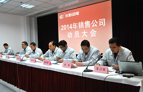 春回大地,瑞雪普降。2014年2月8日,新年伊始,銷售公司全體在公司第二會議室召開了2014年銷售工作動員大會,旨在凝聚人心,增強(qiáng)信心,鼓足干勁,堅(jiān)決貫徹執(zhí)行職代會精神,順應(yīng)公司產(chǎn)品結(jié)構(gòu)轉(zhuǎn)型的大趨勢,抓住機(jī)遇,充分發(fā)揮銷售公司急先鋒的作用,發(fā)揚(yáng)紡電銷售能打硬仗,敢打硬仗的光榮傳統(tǒng),做好常規(guī)產(chǎn)品銷售的同時,擴(kuò)大新的支柱產(chǎn)品的區(qū)域和銷量。公司總經(jīng)理薛冬泉、黨總支書記高金寬、公司副總經(jīng)理董靜洲參加會議。