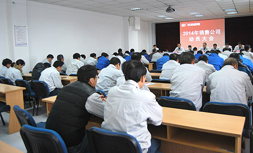 動員會上,銷售公司代表副經(jīng)理吳耿民、銷售員代表姜煒、服務(wù)人員代表趙曉濤、公司內(nèi)部支持人員田鵬等代表銷售公司各崗位發(fā)言,表示要緊緊圍繞公司目標(biāo)團(tuán)結(jié)一致,頑強(qiáng)拼搏,為完成2014年的任務(wù)努力工作。