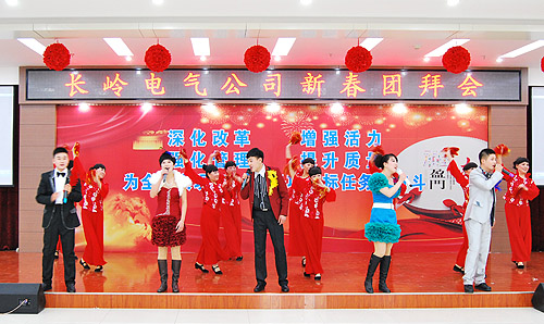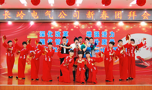 1月28日春節(jié)來臨之際,電氣公司新春團拜會精彩呈現(xiàn)。我公司歌伴舞節(jié)目《拜新年》,朝氣蓬勃,清新熱烈,互動效果好,并以年輕人特有的活力渲染了濃烈的節(jié)日氣氛,送去了濃濃的節(jié)日祝福,贏得了陣陣掌聲,獲得一致好評。