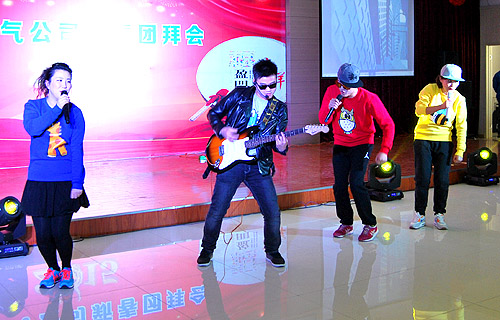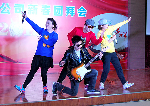 2015年2月16日,農(nóng)歷乙未春節(jié)來臨之際,紡電公司參加了電氣公司春節(jié)團(tuán)拜會。我公司小合唱節(jié)目《超級英雄》氣氛熱烈,充滿朝氣,獲得一致點(diǎn)贊,由于他們的精彩表現(xiàn),還被現(xiàn)場特邀參加了謝幕節(jié)目的演唱。4個年輕人的現(xiàn)場表演精彩不斷,她們憑借扎實(shí)的唱功和豐富的舞臺經(jīng)驗(yàn),以自身獨(dú)特的視角,抒發(fā)了對生活的熱愛之情。尤其是封宇冬的電吉它演奏,充分體現(xiàn)了年輕人熱愛生活、向往自由的生活方式,增強(qiáng)了演出效果,烘托了舞臺氣氛,渲染了濃烈的節(jié)日氣氛,送去了溫馨的節(jié)日祝福,贏得了現(xiàn)場觀眾的陣陣掌聲。