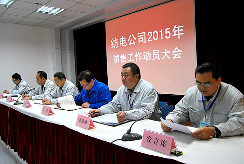 2月26日,公司召開(kāi)“2015年銷(xiāo)售工作動(dòng)員大會(huì)”,銷(xiāo)售公司、織機(jī)項(xiàng)目部全體員工參加會(huì)議。公司領(lǐng)導(dǎo)薛冬泉、雷濤、高金寬出席會(huì)議,會(huì)議由董靜洲副總經(jīng)理主持。